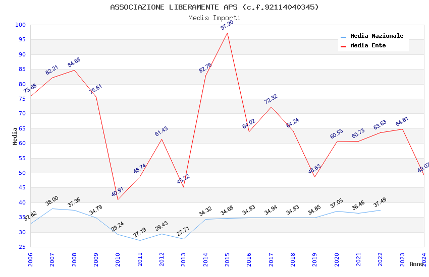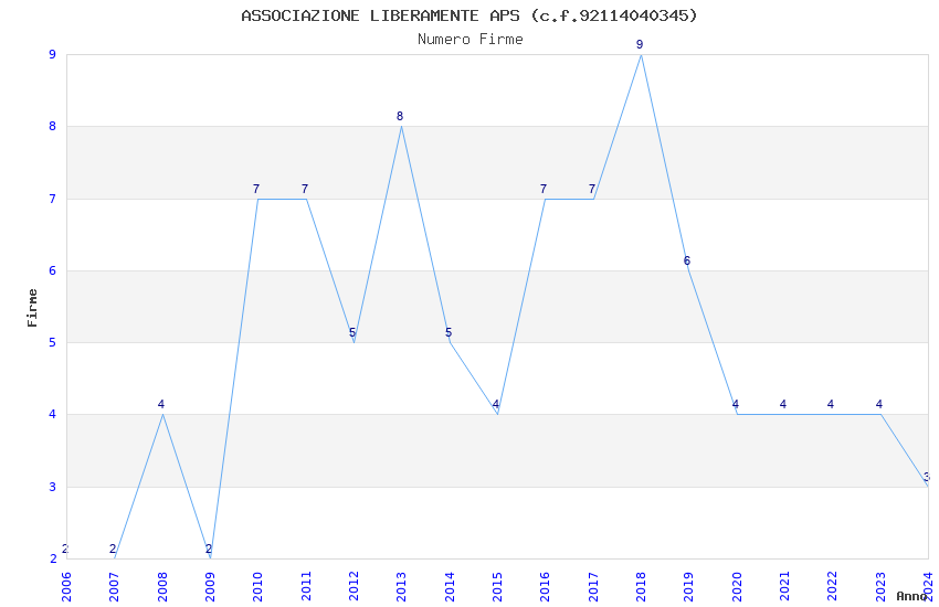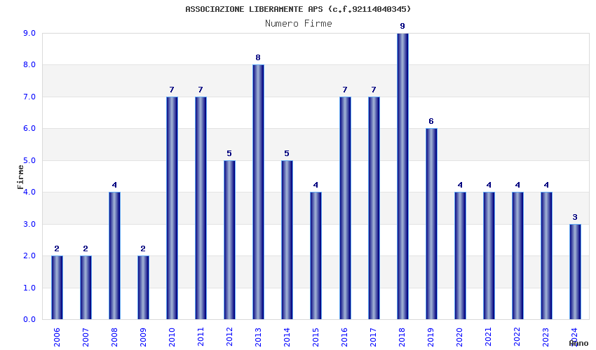 | Anno | Firme | Importi | Media | Naz. | Reg. | Prov. | Comu. |