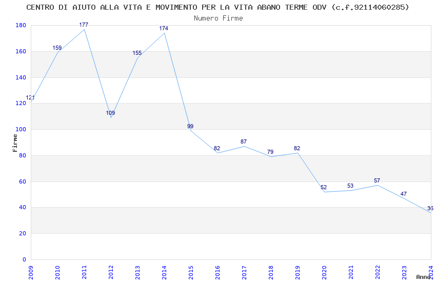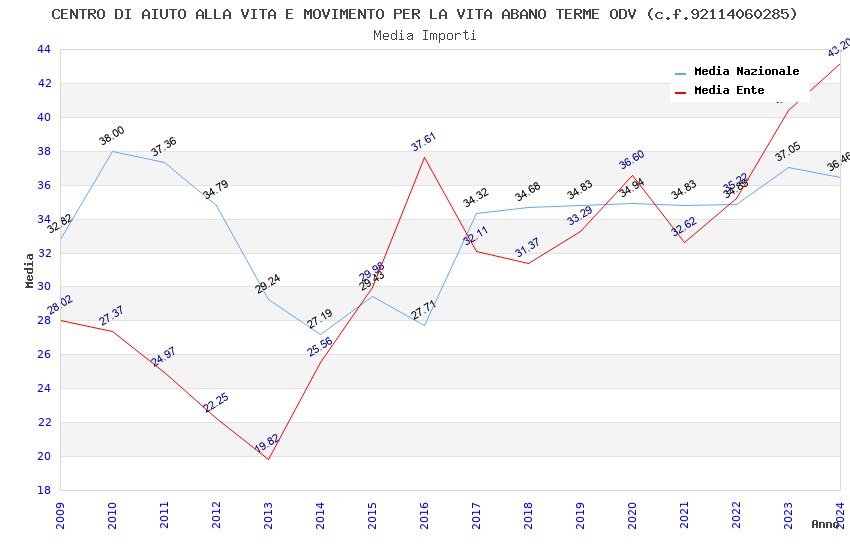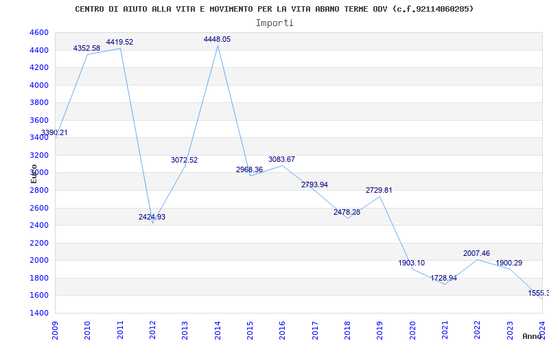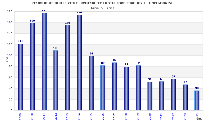 | Anno | Firme | Importi | Media | Naz. | Reg. | Prov. | Comu. |