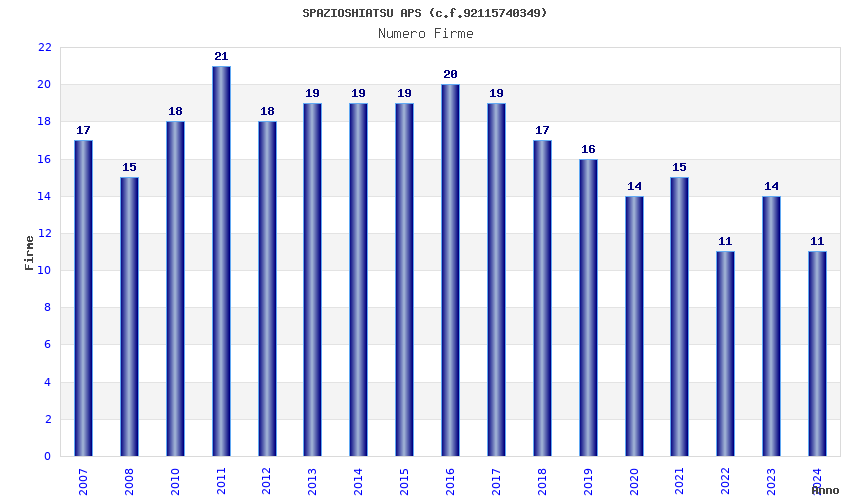 | Anno | Firme | Importi | Media | Naz. | Reg. | Prov. | Comu. |