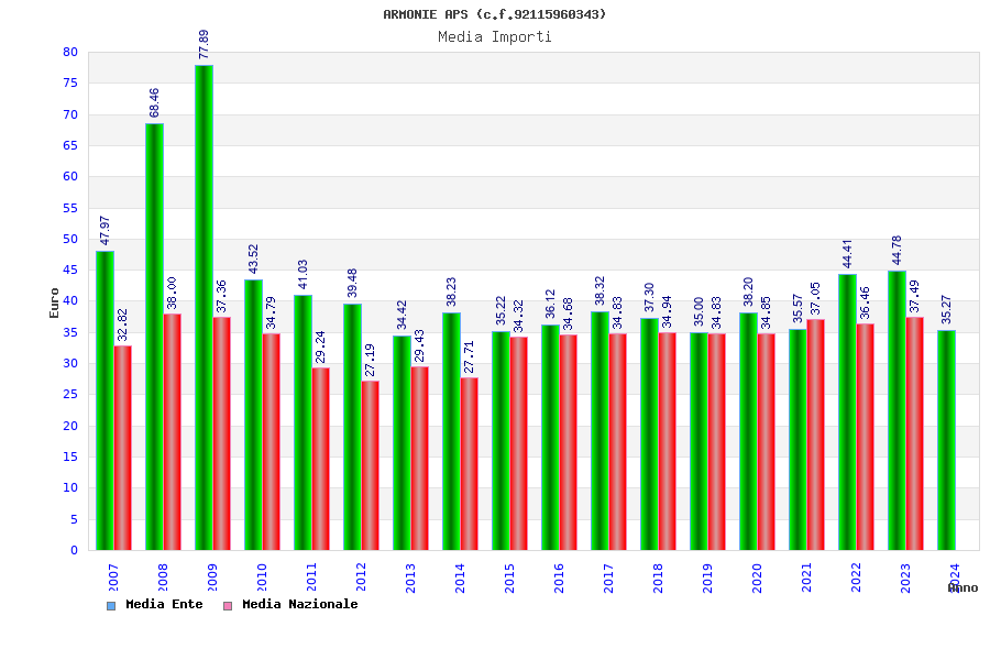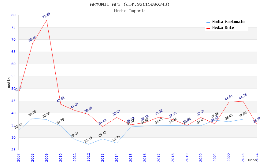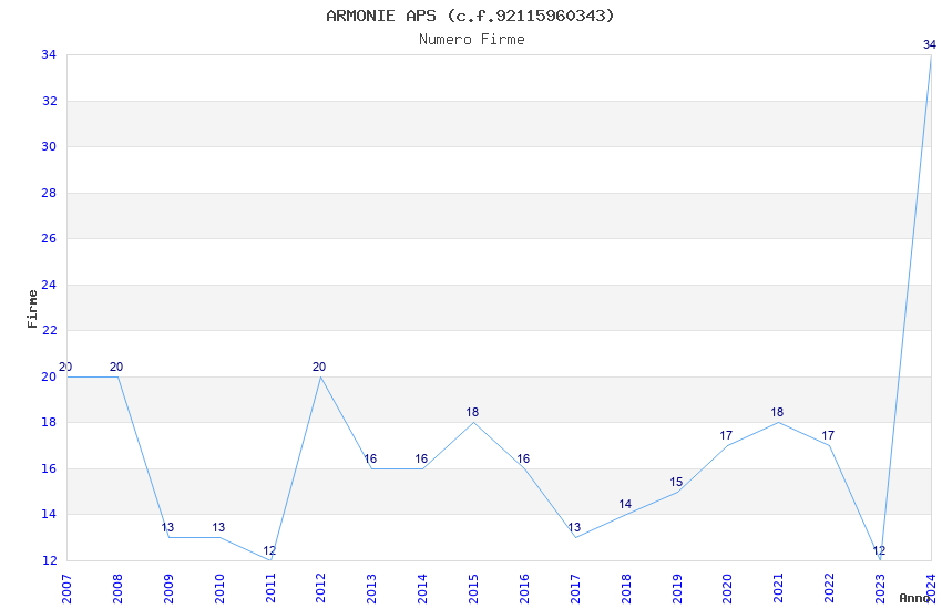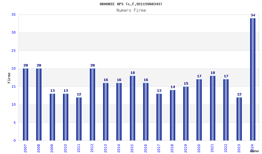 | Anno | Firme | Importi | Media | Naz. | Reg. | Prov. | Comu. |