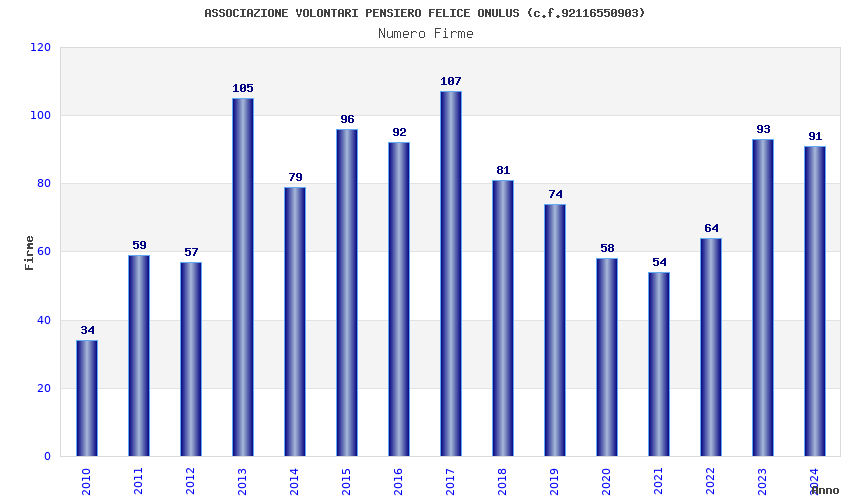 | Anno | Firme | Importi | Media | Naz. | Reg. | Prov. | Comu. |