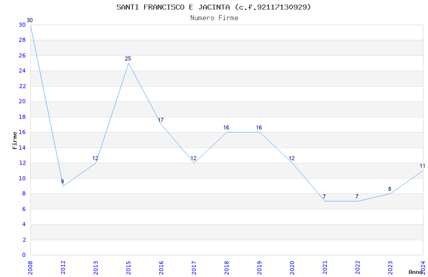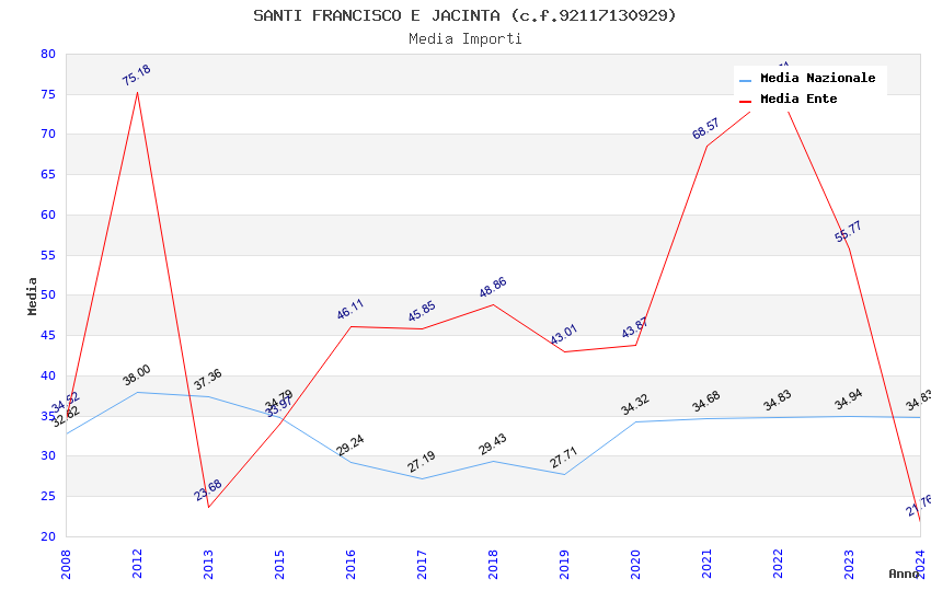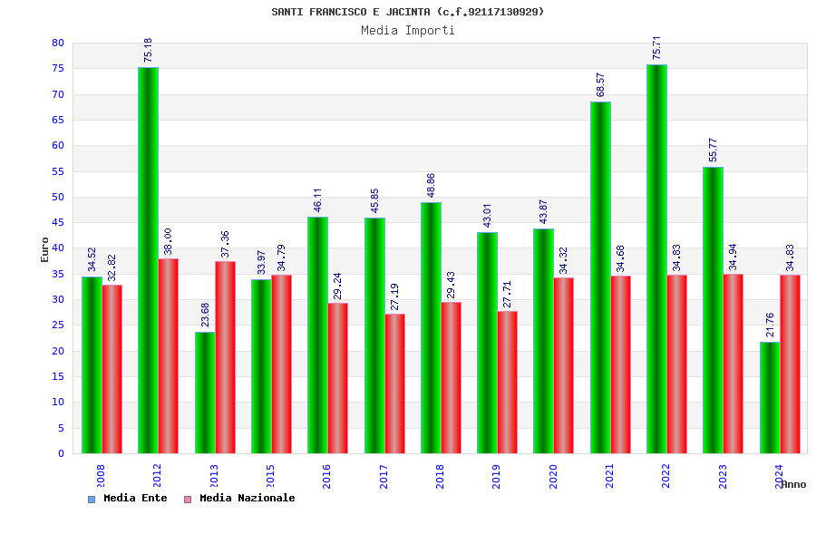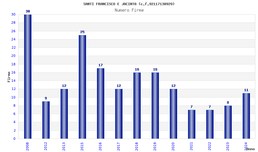 | Anno | Firme | Importi | Media | Naz. | Reg. | Prov. | Comu. |