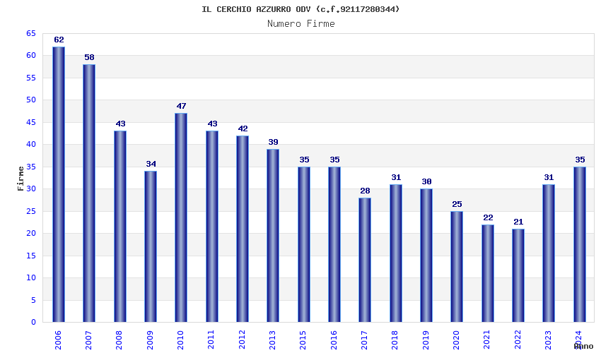 | Anno | Firme | Importi | Media | Naz. | Reg. | Prov. | Comu. |
