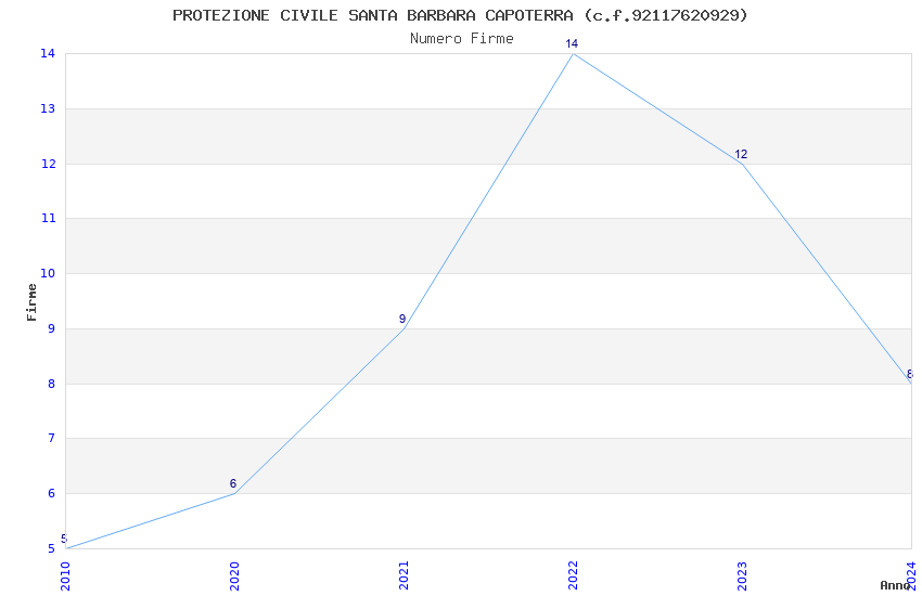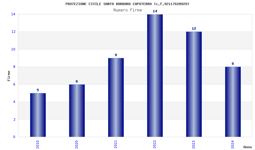 | Anno | Firme | Importi | Media | Naz. | Reg. | Prov. | Comu. |
