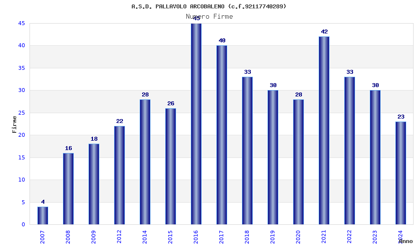 | 2016 | 45 | 1.793,42 | 39,85 | 24.337 | 2.313 | 523 | 224 |