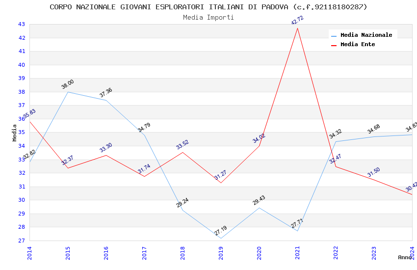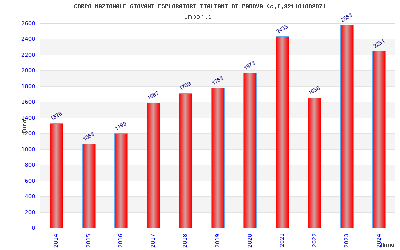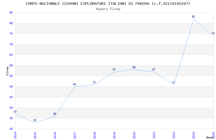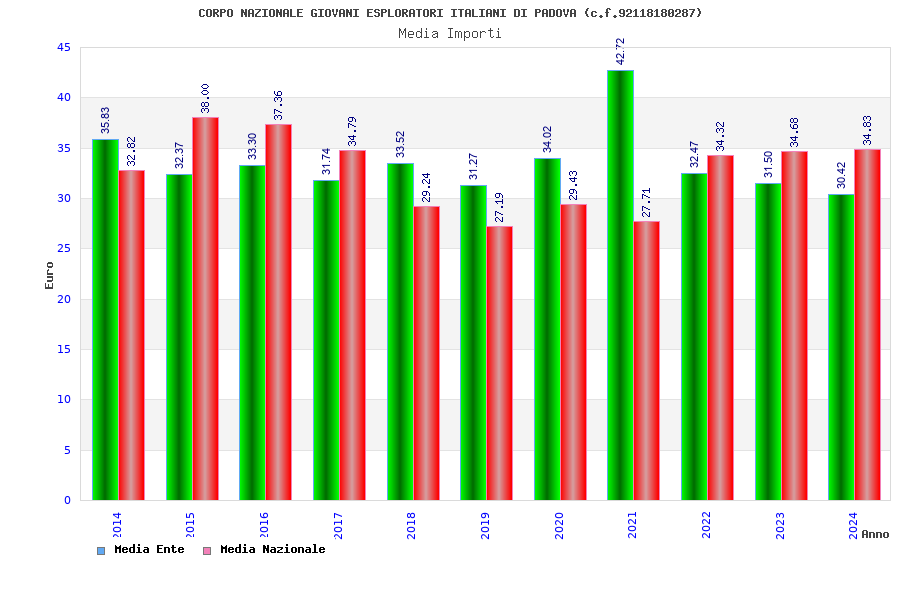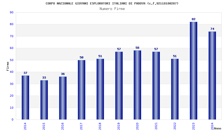 | Anno | Firme | Importi | Media | Naz. | Reg. | Prov. | Comu. |
