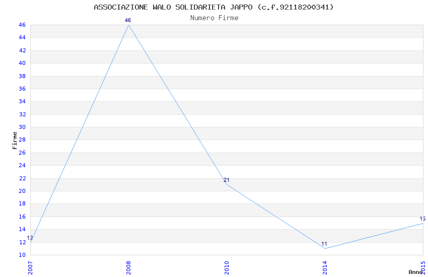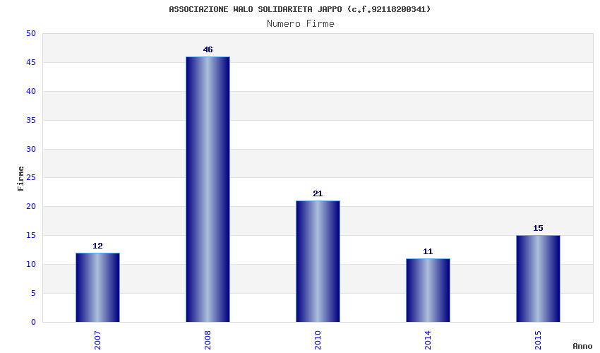 | Anno | Firme | Importi | Media | Naz. | Reg. | Prov. | Comu. |