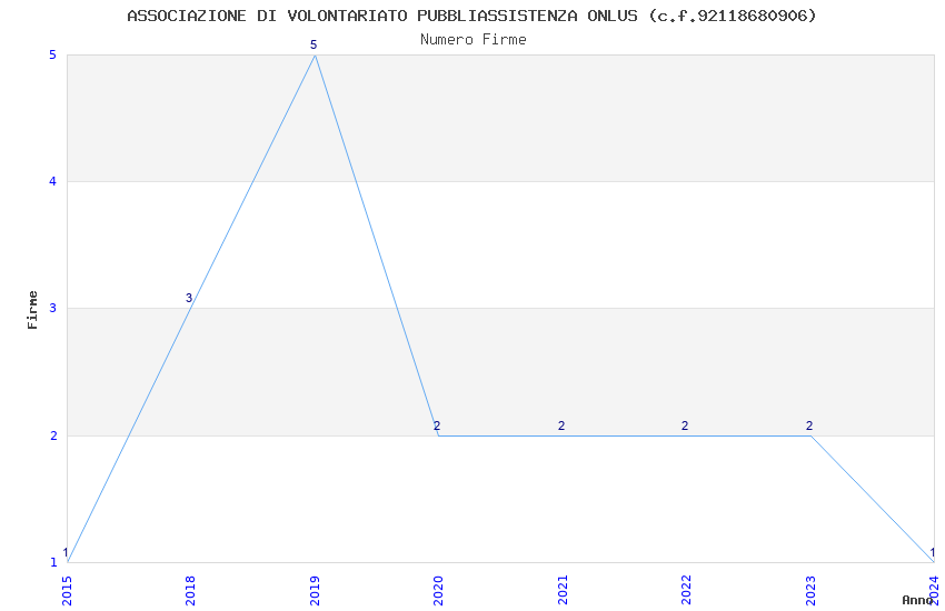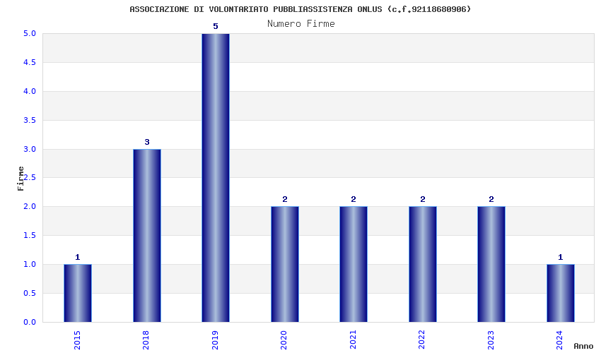 | Anno | Firme | Importi | Media | Naz. | Reg. | Prov. | Comu. |
