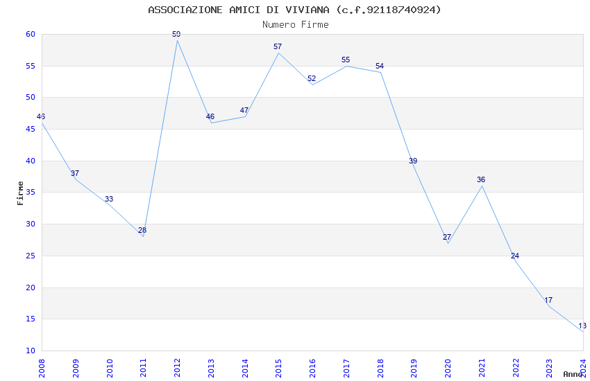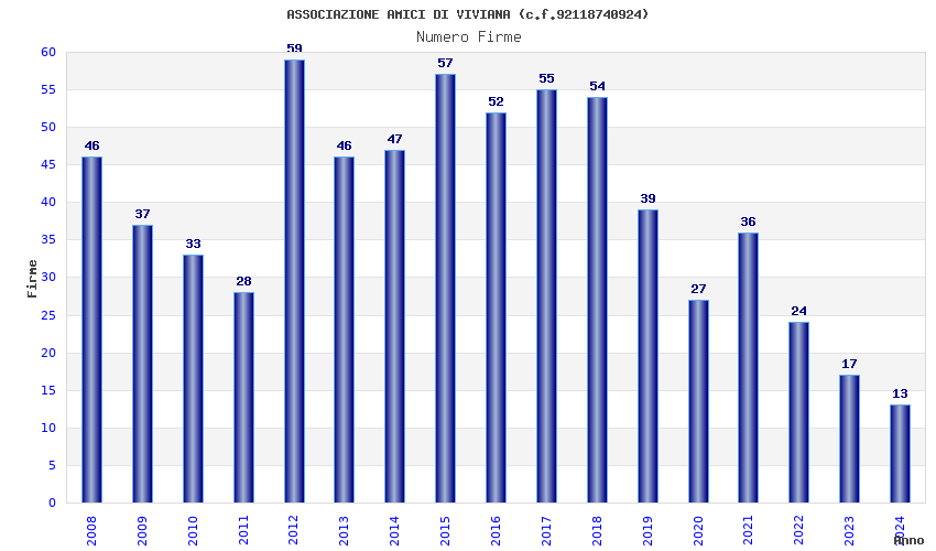 | Anno | Firme | Importi | Media | Naz. | Reg. | Prov. | Comu. |