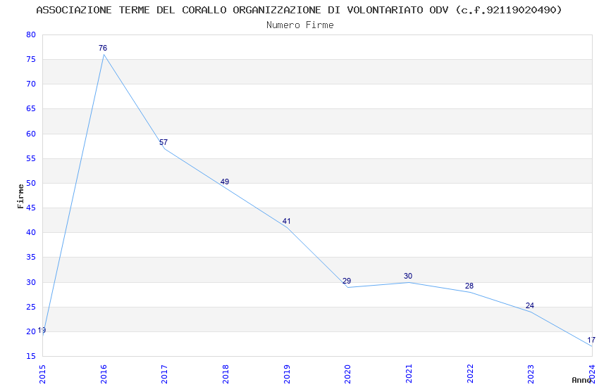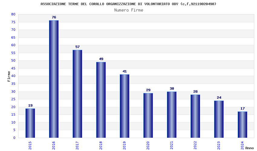 | 2016 | 76 | 3.664,18 | 48,21 | 14.589 | 906 | 72 | 35 |