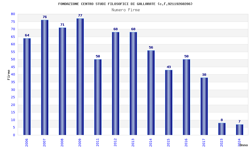 | Anno | Firme | Importi | Media | Naz. | Reg. | Prov. | Comu. |