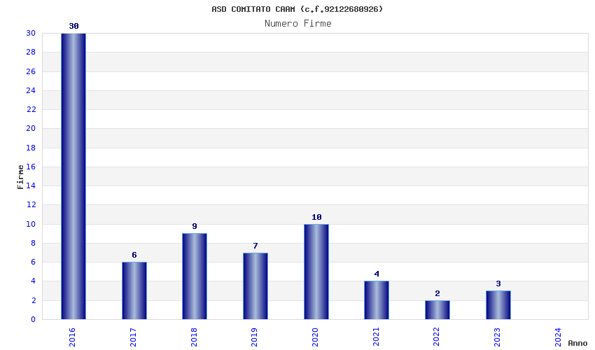 | Anno | Firme | Importi | Media | Naz. | Reg. | Prov. | Comu. |