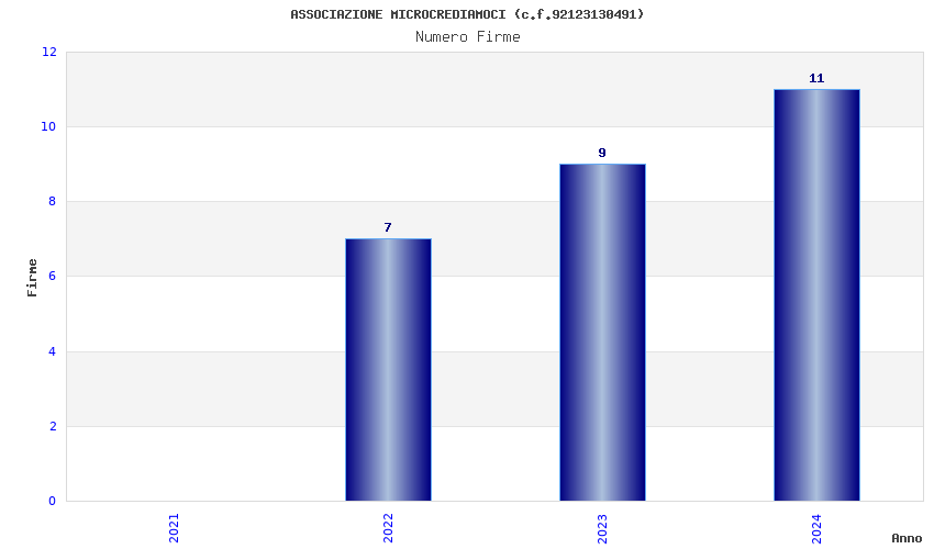 | Anno | Firme | Importi | Media | Naz. | Reg. | Prov. | Comu. |