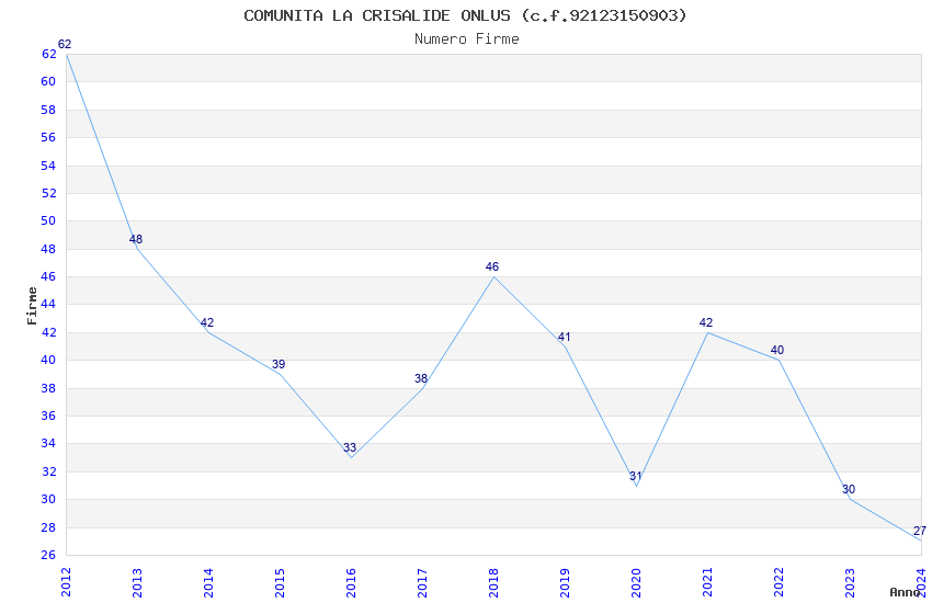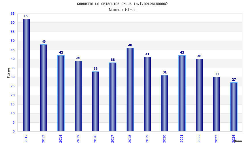 | Anno | Firme | Importi | Media | Naz. | Reg. | Prov. | Comu. |