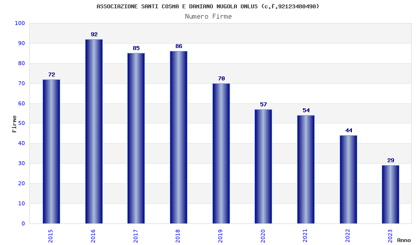 | Anno | Firme | Importi | Media | Naz. | Reg. | Prov. | Comu. |