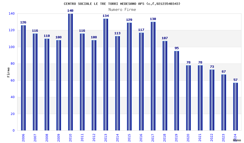 | Anno | Firme | Importi | Media | Naz. | Reg. | Prov. | Comu. |