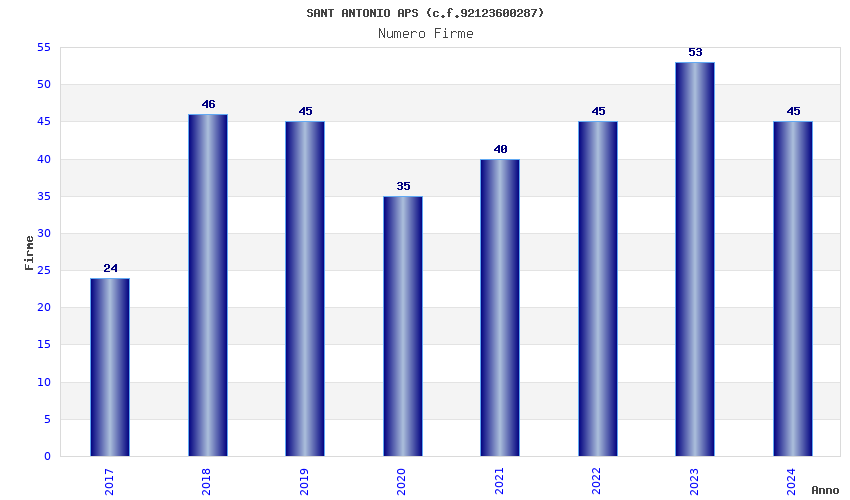 | Anno | Firme | Importi | Media | Naz. | Reg. | Prov. | Comu. |