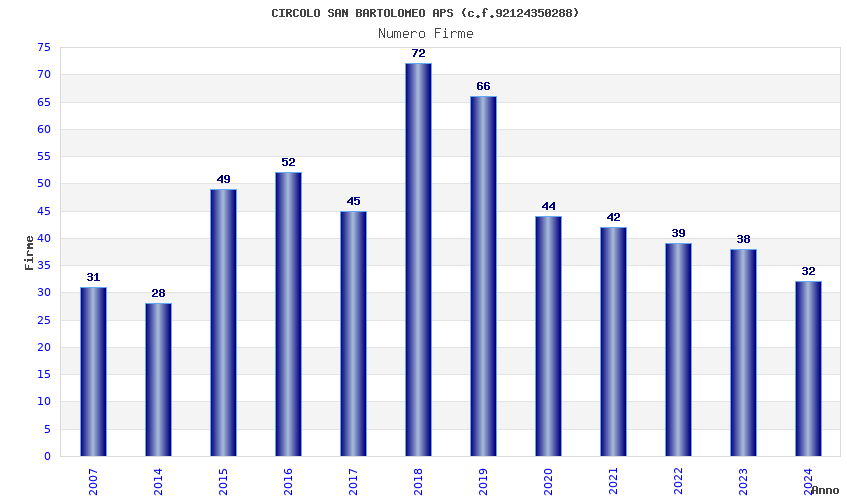 | Anno | Firme | Importi | Media | Naz. | Reg. | Prov. | Comu. |
