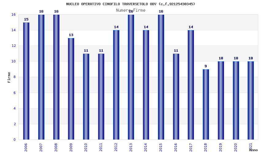 | Anno | Firme | Importi | Media | Naz. | Reg. | Prov. | Comu. |