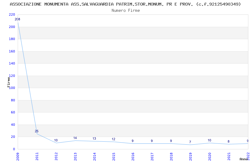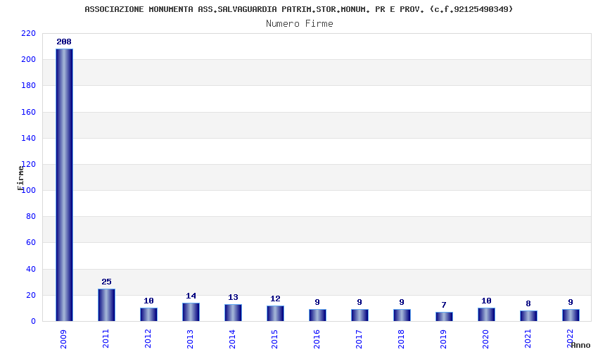 | Anno | Firme | Importi | Media | Naz. | Reg. | Prov. | Comu. |
