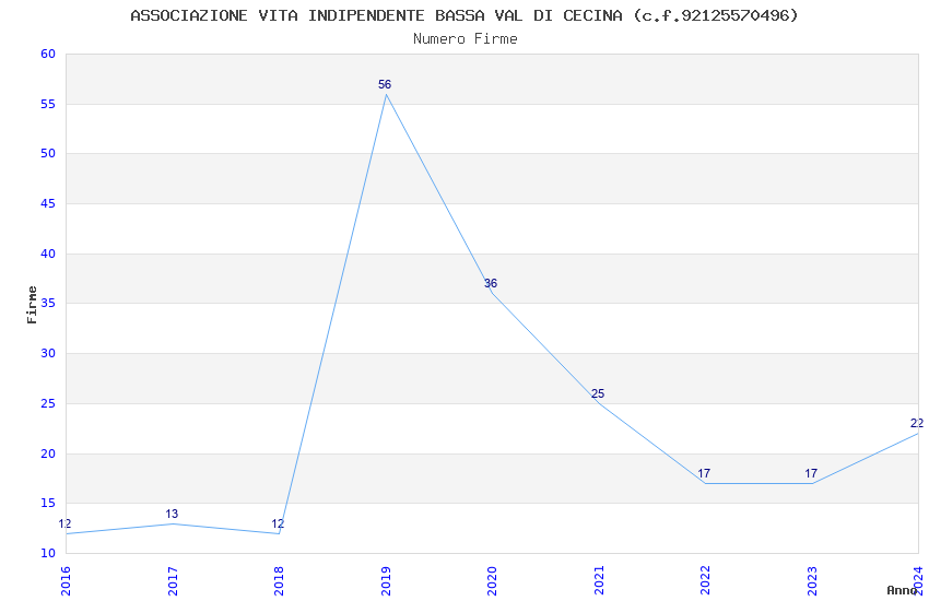 | 2019 | 56 | 1.189,98 | 21,25 | 32.619 | 1.978 | 141 | 15 |