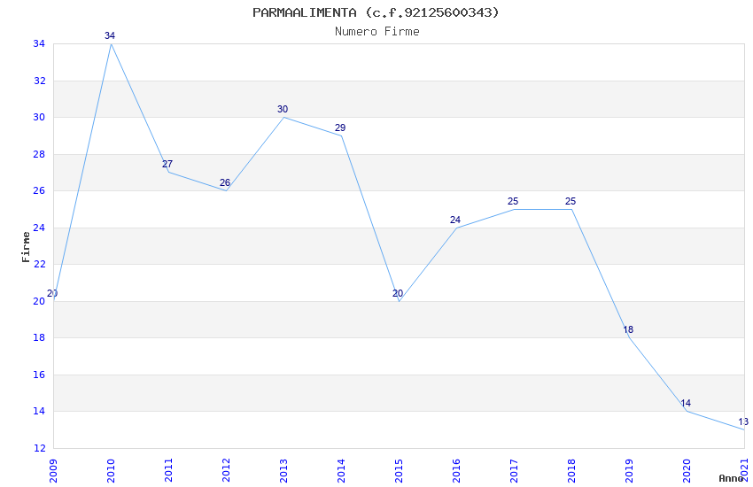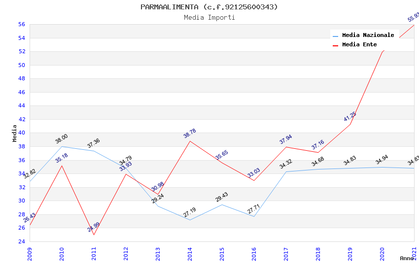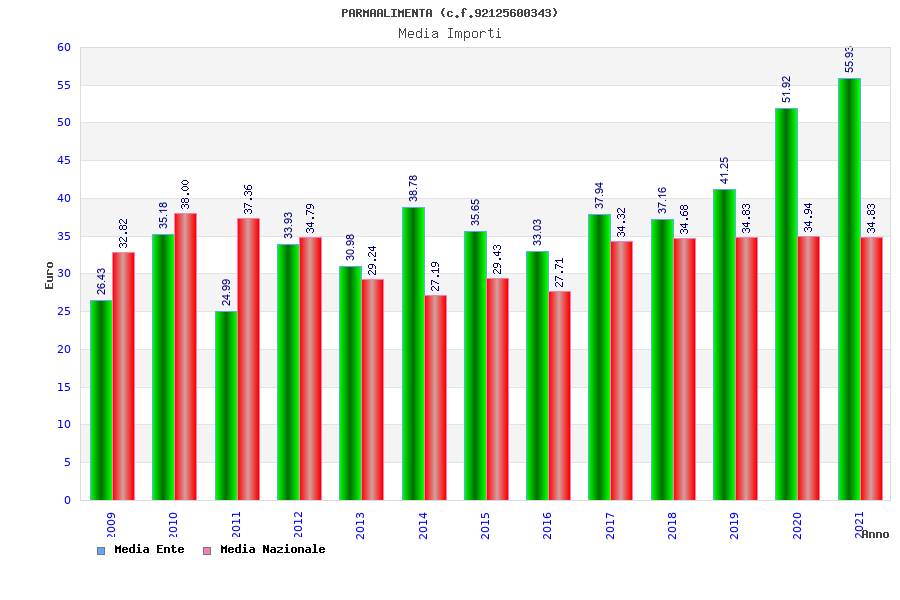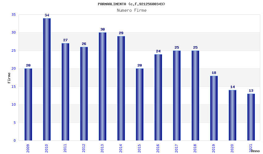 | Anno | Firme | Importi | Media | Naz. | Reg. | Prov. | Comu. |