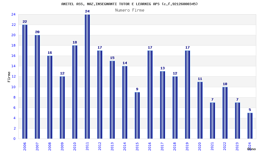 | Anno | Firme | Importi | Media | Naz. | Reg. | Prov. | Comu. |