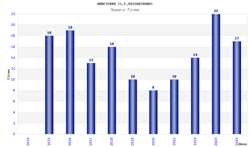 | Anno | Firme | Importi | Media | Naz. | Reg. | Prov. | Comu. |