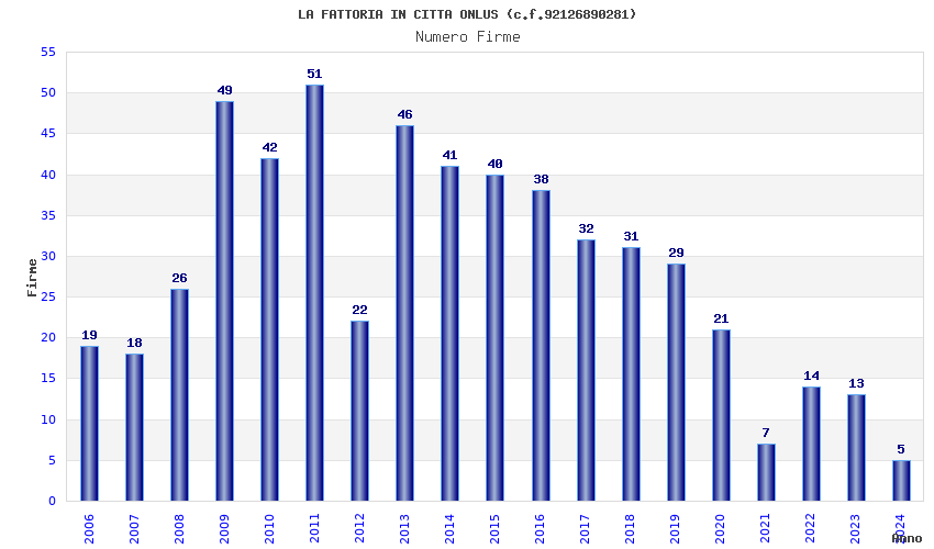 | Anno | Firme | Importi | Media | Naz. | Reg. | Prov. | Comu. |