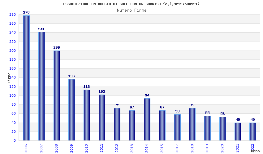 | Anno | Firme | Importi | Media | Naz. | Reg. | Prov. | Comu. |