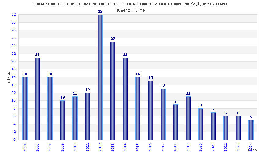 | Anno | Firme | Importi | Media | Naz. | Reg. | Prov. | Comu. |