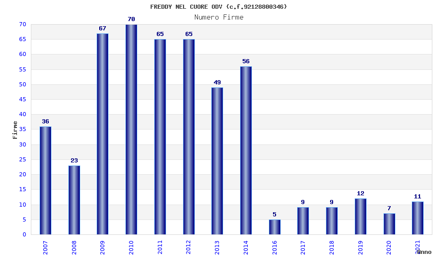 | 2010 | 70 | 5.087,20 | 72,67 | 8.156 | 716 | 100 | 58 |