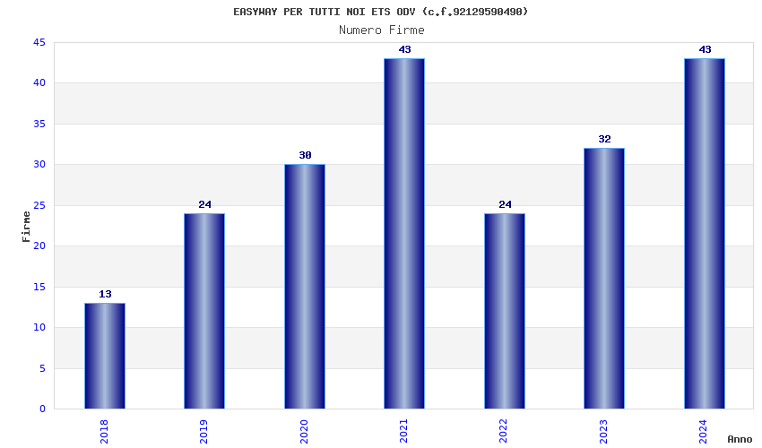 | Anno | Firme | Importi | Media | Naz. | Reg. | Prov. | Comu. |