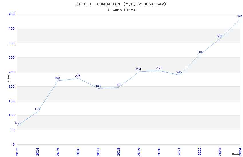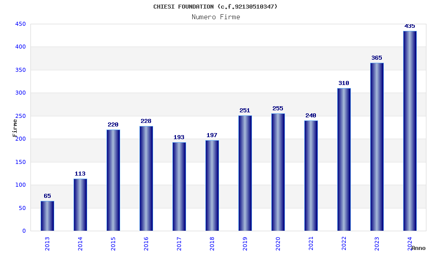 | Anno | Firme | Importi | Media | Naz. | Reg. | Prov. | Comu. |