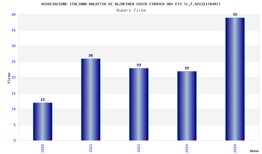 | Anno | Firme | Importi | Media | Naz. | Reg. | Prov. | Comu. |