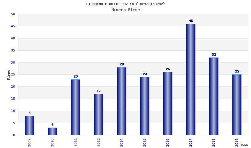 | Anno | Firme | Importi | Media | Naz. | Reg. | Prov. | Comu. |