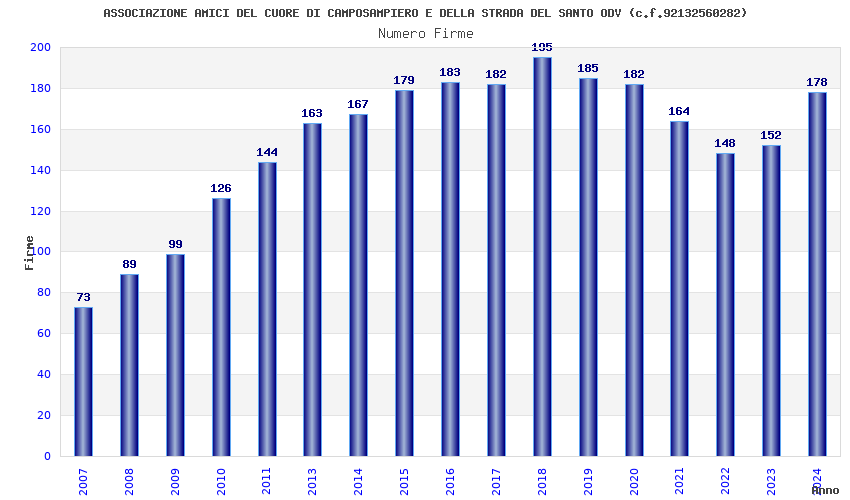 | 2018 | 195 | 6.562,51 | 33,65 | 8.288 | 758 | 178 | 5 |