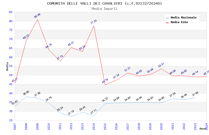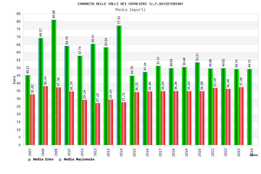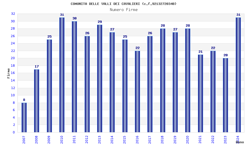 | Anno | Firme | Importi | Media | Naz. | Reg. | Prov. | Comu. |