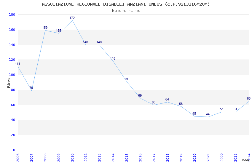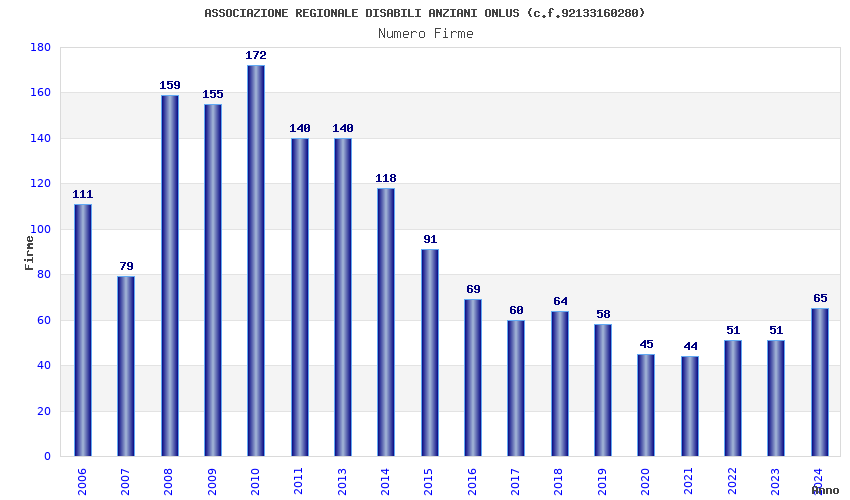| Anno | Firme | Importi | Media | Naz. | Reg. | Prov. | Comu. |