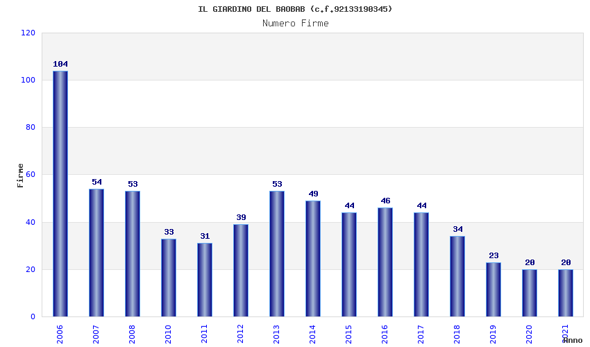 | Anno | Firme | Importi | Media | Naz. | Reg. | Prov. | Comu. |