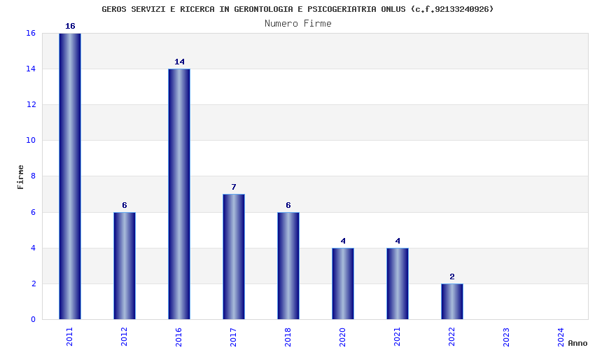 | Anno | Firme | Importi | Media | Naz. | Reg. | Prov. | Comu. |