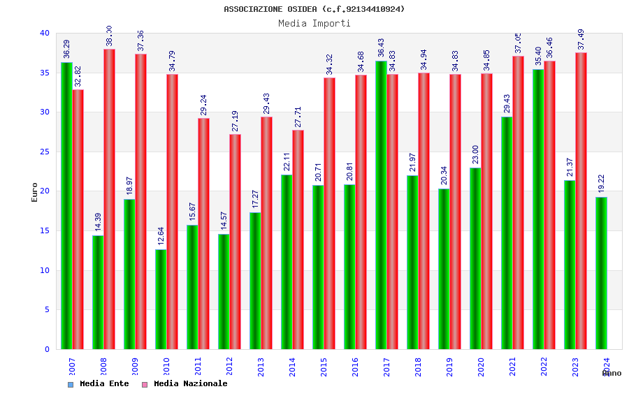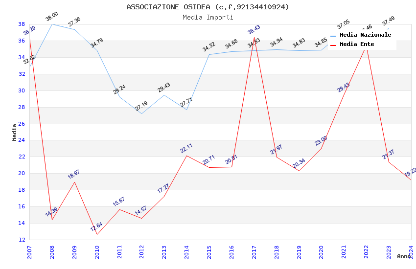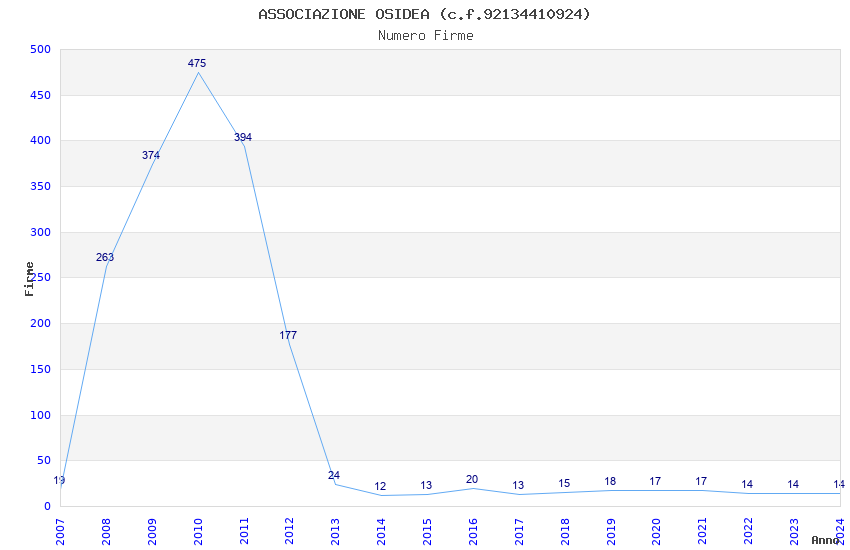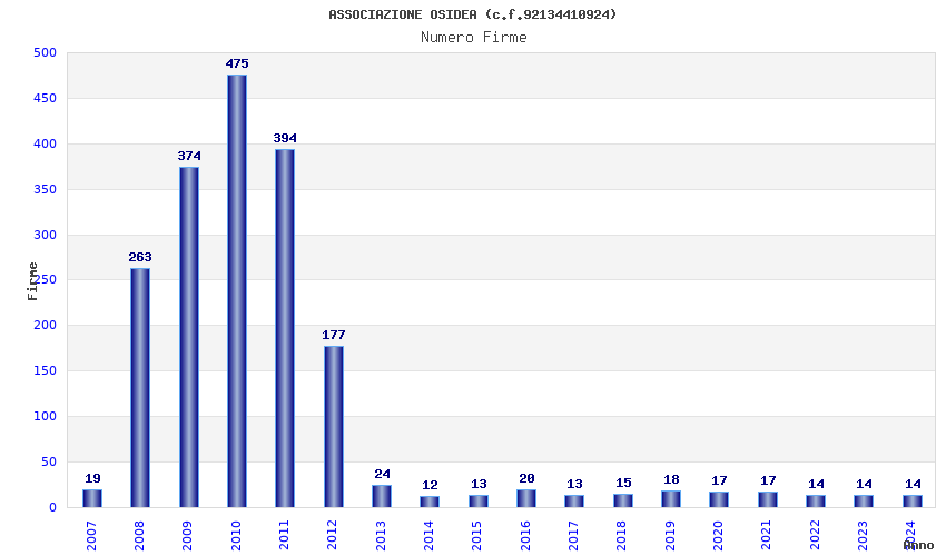 | Anno | Firme | Importi | Media | Naz. | Reg. | Prov. | Comu. |