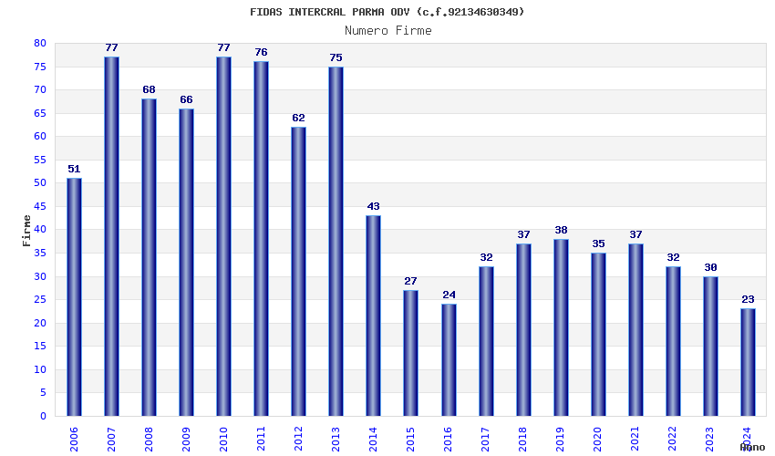| Anno | Firme | Importi | Media | Naz. | Reg. | Prov. | Comu. |