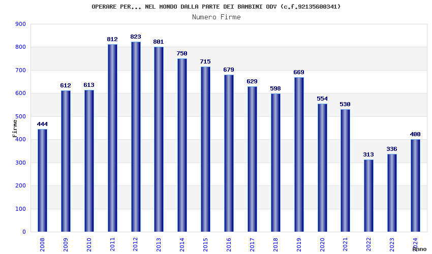 | Anno | Firme | Importi | Media | Naz. | Reg. | Prov. | Comu. |
