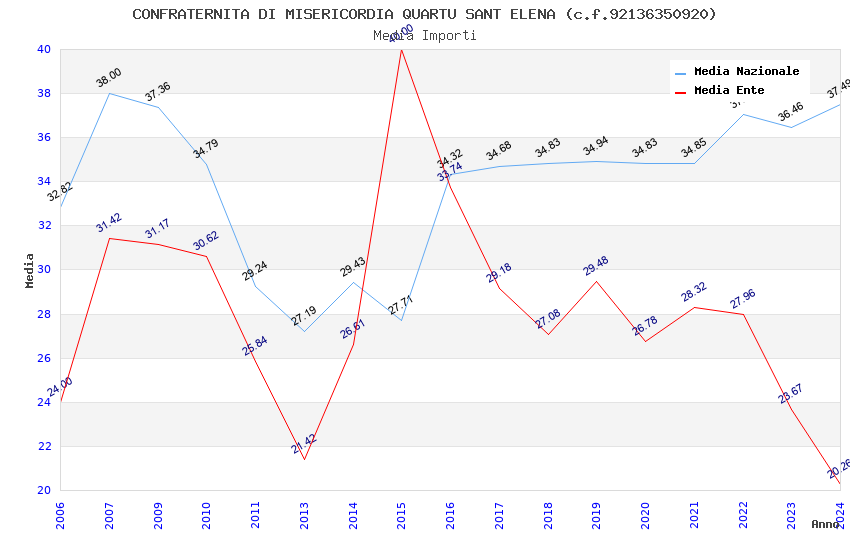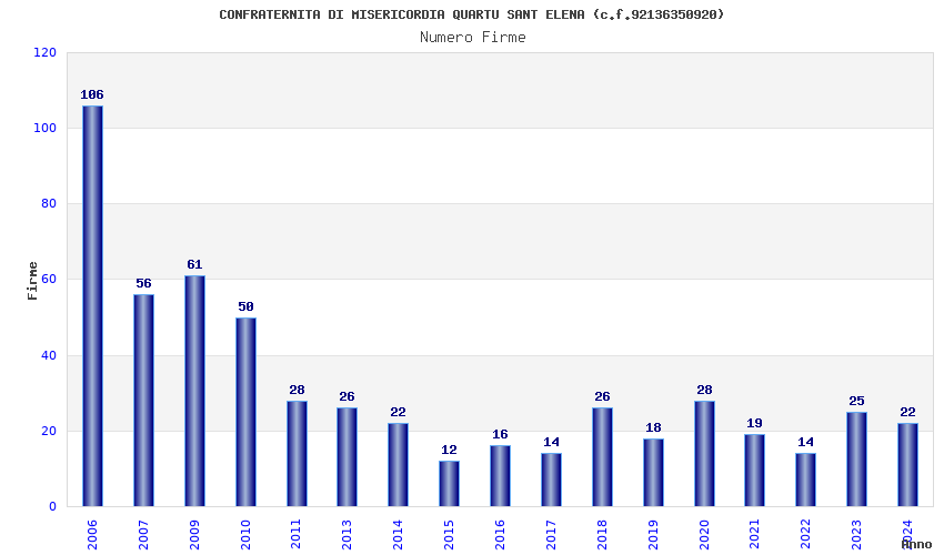 | Anno | Firme | Importi | Media | Naz. | Reg. | Prov. | Comu. |