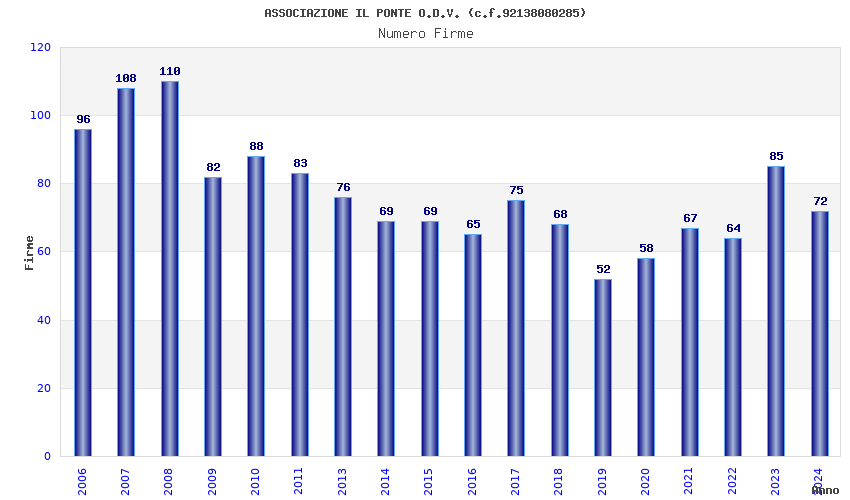 | Anno | Firme | Importi | Media | Naz. | Reg. | Prov. | Comu. |
