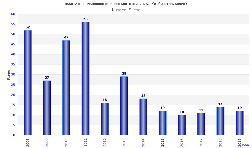 | Anno | Firme | Importi | Media | Naz. | Reg. | Prov. | Comu. |