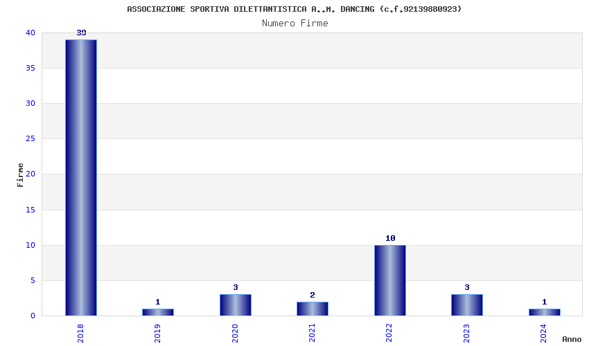 | Anno | Firme | Importi | Media | Naz. | Reg. | Prov. | Comu. |