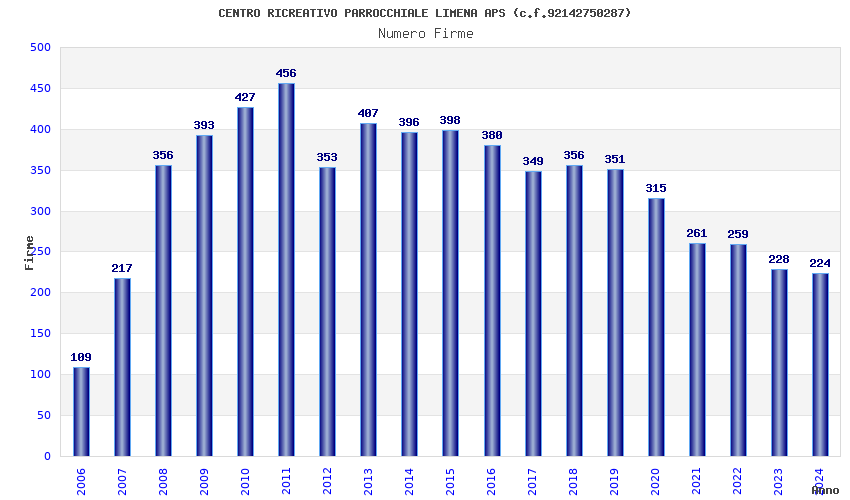 | 2011 | 456 | 10.710,21 | 23,49 | 3.489 | 259 | 61 | 1 |