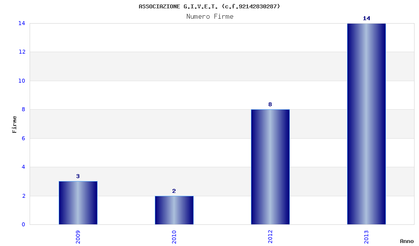 | Anno | Firme | Importi | Media | Naz. | Reg. | Prov. | Comu. |